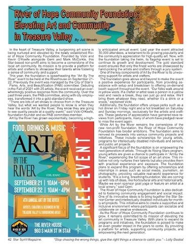 Founded in 2024, River of Hope Community Foundation, Inc. began as a small group of individuals who shared a passion for the local community and who are committed to the support, enhancement and growth of the arts in all its forms, throughout Idaho's Treasure Valley.